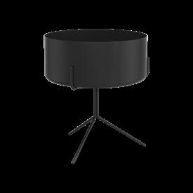 Round table with black lacquered steel frame and natural lacquered ash table top.