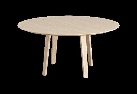 Round table in natural lacquer, black or white lasered ash with moulded legs. Also available with white laminate top.