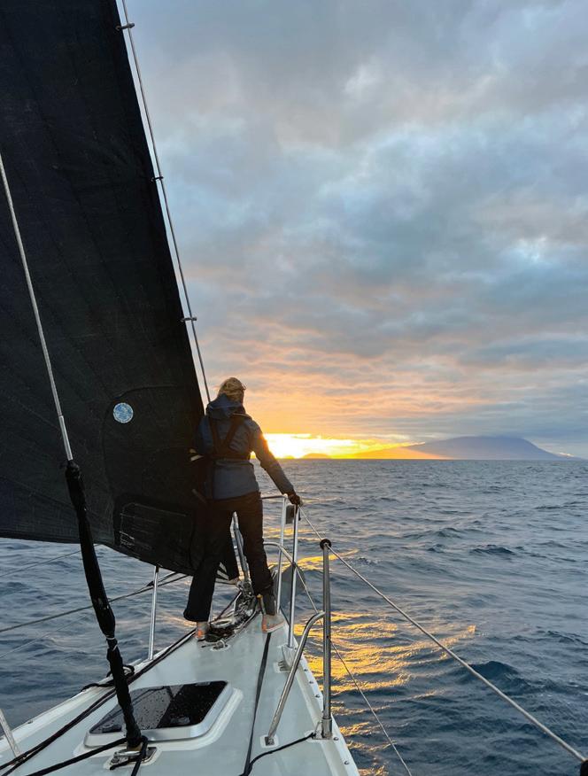 before seeing it,” he said before we set sail. Could this be it? I rush up on deck just as the light is returning. Soon, the rising sun begins to paint the horizon a glowing gold and I see the island of Faial in the distance. My cheeks are wet with tears I didn’t feel coming. We’ve made it.