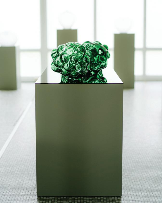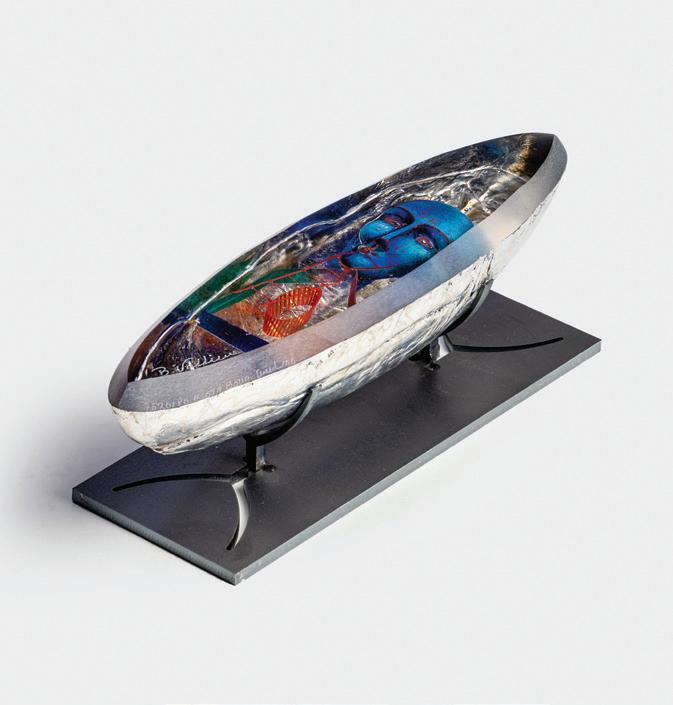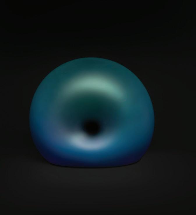 “I’m currently working with semiabstract shapes that are blown freehand, and after that, I work on the surface together with the cutters,” he says. “What makes glass such an interesting material, is that it is translucent and very fast. Compared to working in bronze and with oil painting, you need to make decisions quickly and work together. I love to work with others and the communication it requires. Many intuitive things happen all the time. That speed and communication bring an energy I really like.”