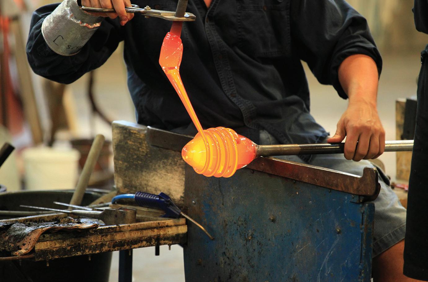 glassworks remain, but there is a growing number of small blowing rooms and studios focusing on art glass.