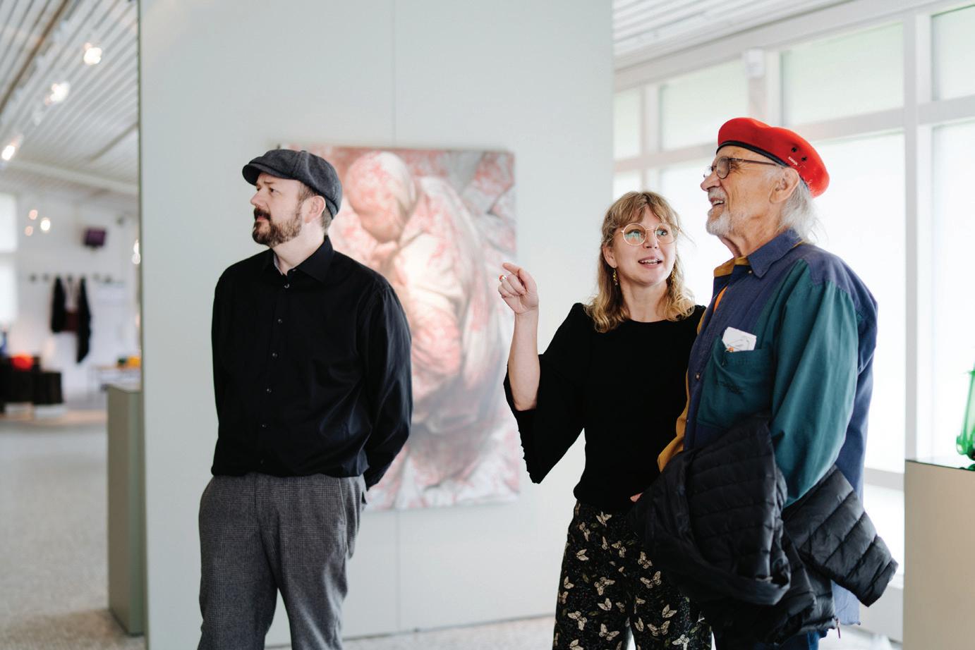 Markus Åkesson and Ellen Ehk Åkesson together with Bertil Vallien at the exhibition The trailing moss and mystic glow.