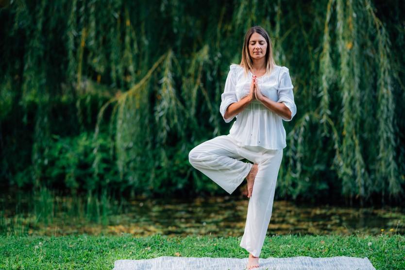 Balance and Focus: Shift your weight onto one leg, place the sole of the opposite foot against your inner thigh or calf, and find your balance. Extend your arms upward or in a prayer position at your chest. Hold for several breaths on each side.