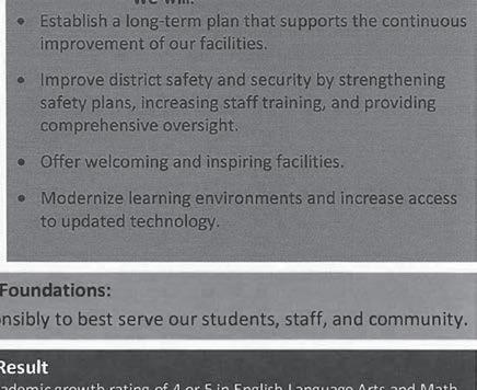 Priority Four, Facility Improvements and Safety: Continuing to follow the established long-term plan that supports the continuous improvement of our facilities, will be a priority of mine. We will continuously improve district safety, and offer welcoming and inspiring facilities while modernizing learning environments and increasing access to updated technology. Hawthorne