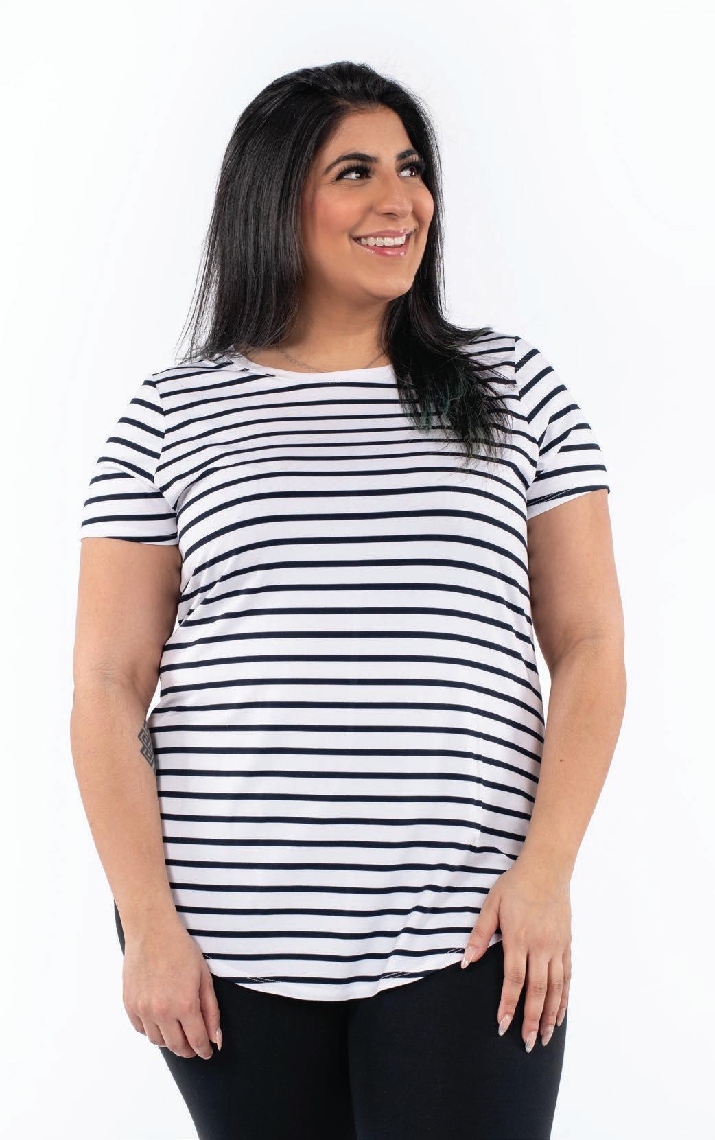 Les basiques ne vieillissent jamais, pas plus qu’un tee-shirt rayé classique comme celui-ci. Avec son design intemporel, c’est une couche de confort indispensable qui vous donne instantanément l’impression d’être élégante. Il s’associe facilement à vos pulls et cardigans préférés et, bien sûr, à vos SweetLegs.