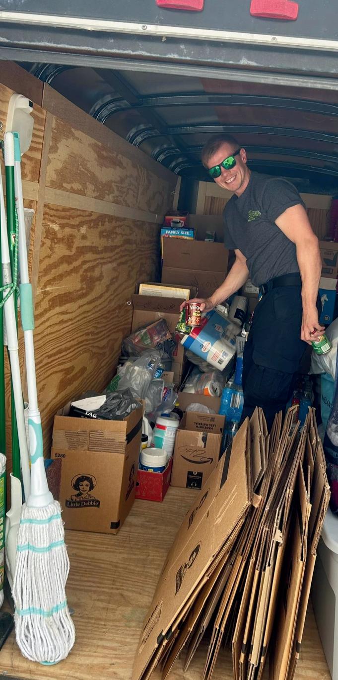 Owen Co. EMT Ben Perkins loading up the trailer with donations for flood victims