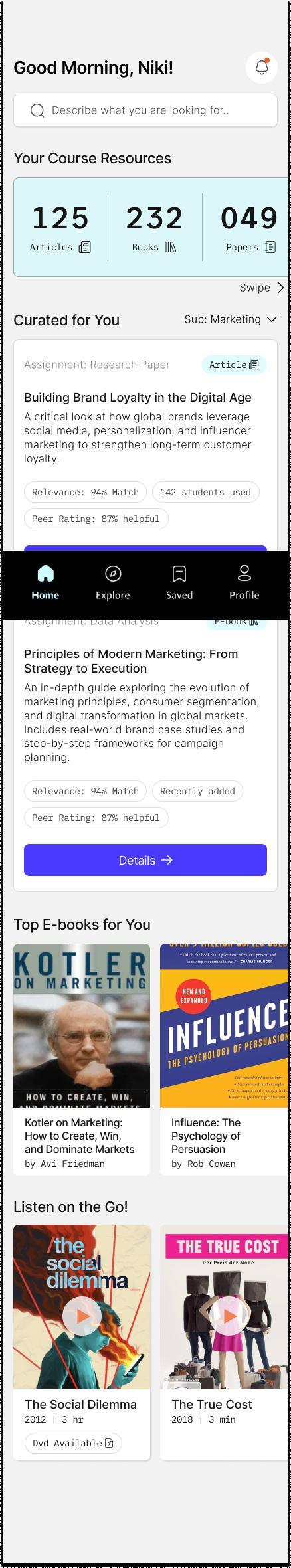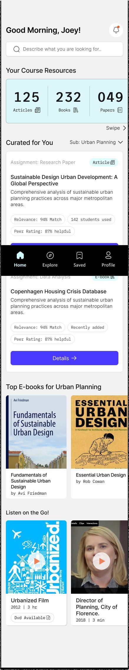 This thesis explores how a more intuitive, personalized, and integrated experience can reduce that friction. Through context building, literature review, primary research, synthesis, competitive analysis, prototyping, testing, and reflection, this project examines how students discover academic resources and how that journey can be improved within their existing digital environments.