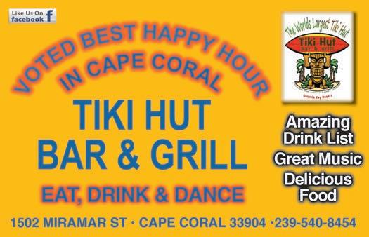 There'salwayssomethingtodoattheTikiHutBar&Grillat theDolphinKeyResort.LocatedinDowntownCapeCoral,the biggestTikibarintheworldoffersliveentertainmentWednesday throughSunday,KeyWestStyleRelaxWednesdayand Thursday,Lightoutdooratmosphere,sofamily,andfriendstwo orfourleggedarewelcome.Greatfoodmenu,withFlorida Specials,TVs.Open7days.Kitchenopenlate.