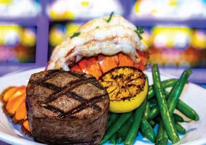 TheEE-TO-LEET-KEGrillfeaturescontemporaryregionalcuisinesutilizingthefreshestselectionsofsteaks,seafood,andanarrayoflocally sourcedproduce.Thestartersmenunowfeatures Southwesttenderlointacoswithpicodegalloand chipotleaioli;chickenquesadillawithblackbeans, roastedcornandpepperjack;andgrilledpeach saladwitharugula,candiedpecans,goatcheese andlemonvinaigrette.Newadditionstotheentrée selectionsincludebeerbatterfishandchipswith coleslawandtartarsauce;blackenedFloridasnapper;crabcakeswithroastedcornsalsa;grilled12ounceribeyewithsofritoandgarlicpuree;anda beefBourguignonmadewithtenderlointips,pearl onions,mushrooms&redwine.Opendaily8a.m. –midnight.