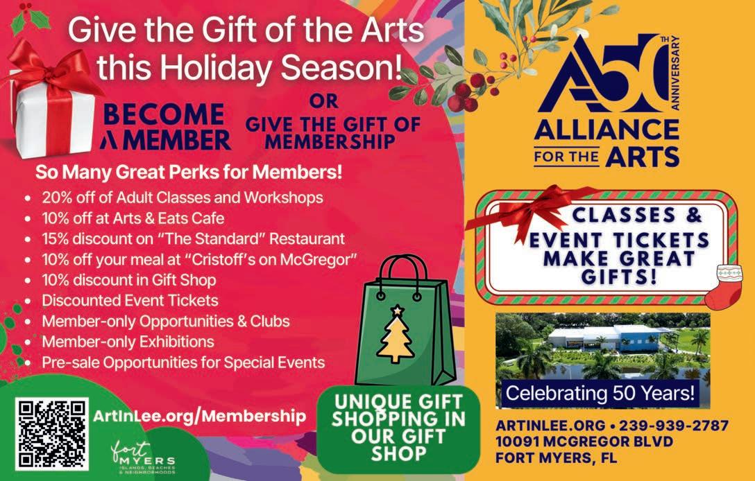 Everytreeisdesignedanddecoratedbylocalbusinesses, filledwithgiftsvaluedbetween$1,750and$2,000,andraffled offtoraisemoneyforGoodwillIndustriesofSouthwestFlorida andtheSidney&BerneDavisArtCenter.Theeventsupports year-roundprogramsthatbringart,education,andopportunity topeoplethroughoutourregion.Raffleticketsareavailablefor $10each,3for$25,10for$50,or25for$100,andallproceedsstaylocal.