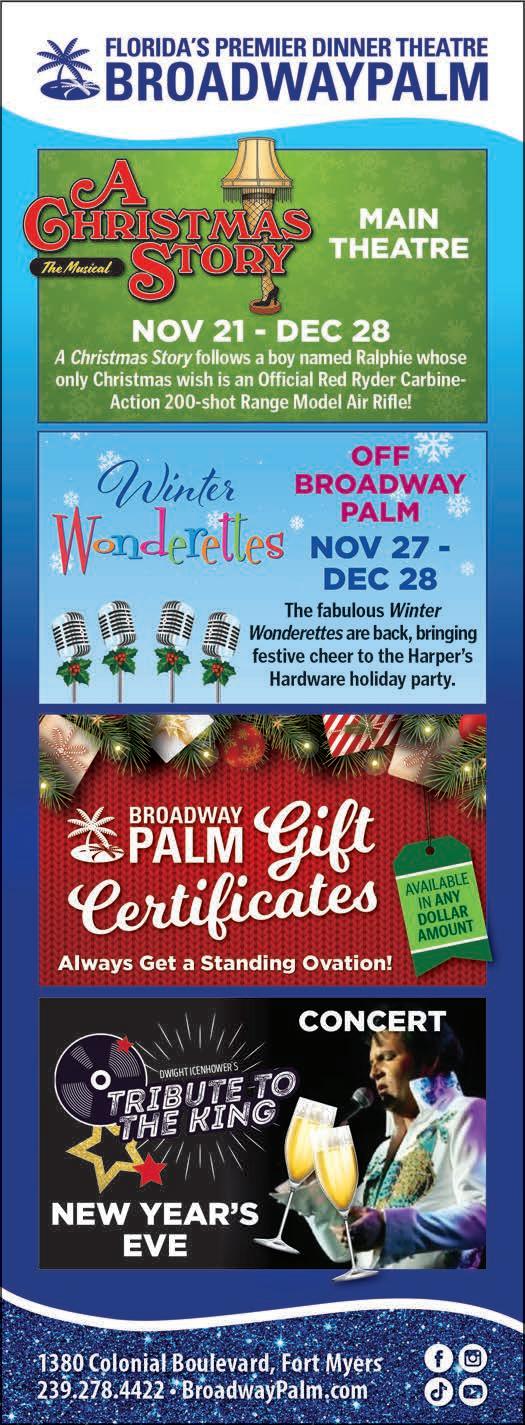 BroadwayPalmDinnerTheatre presentsAChristmasStorythe musicalnowthroughDec.28inFort Myers.