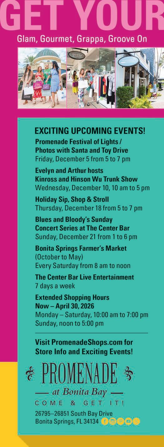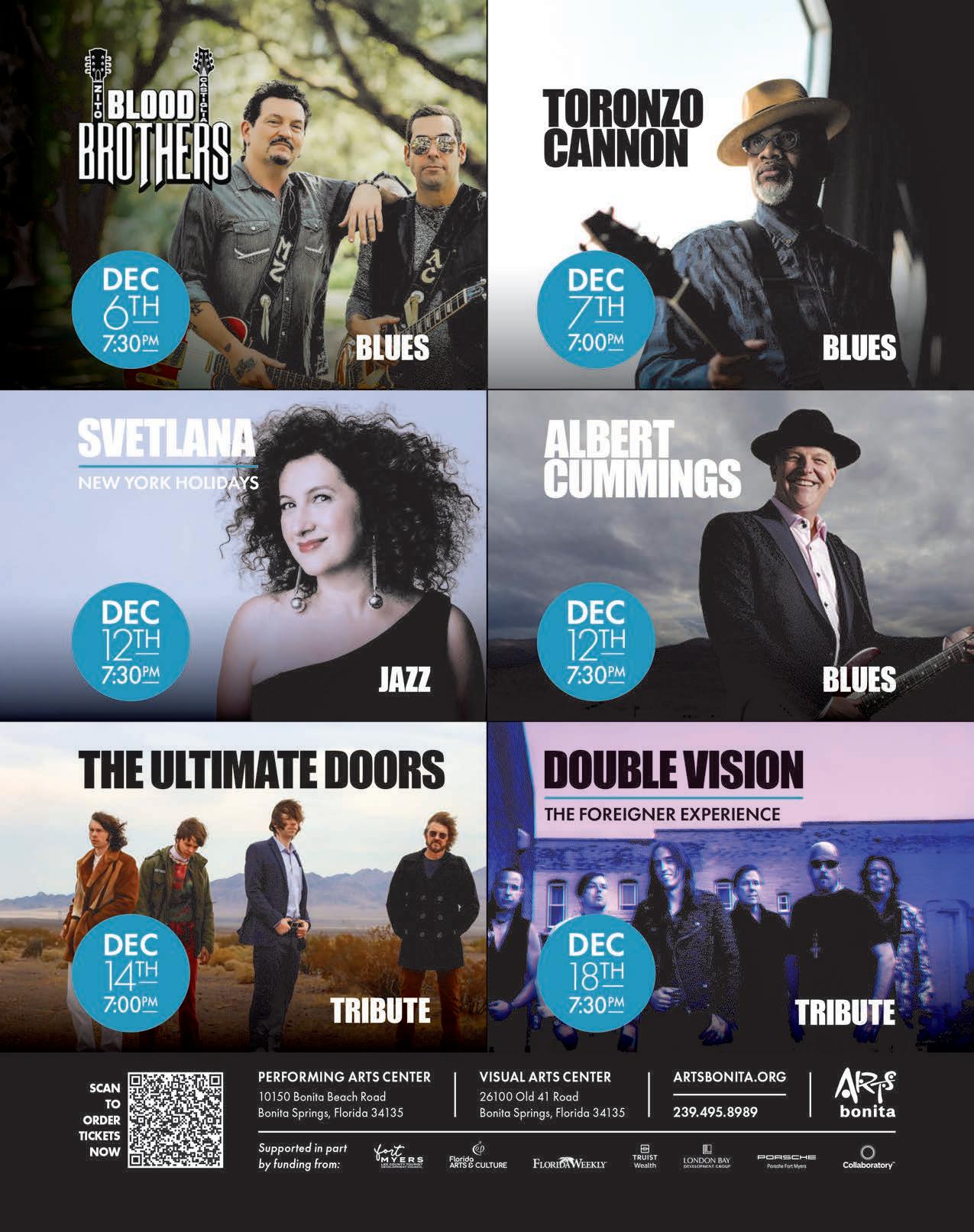“There’salwayssomethinghappening atCaloosaSoundAmphitheaterand LuminaryHotel,”saidJoeShurmur,generalmanagerofLuminaryHotel&Co. “Thisseasoncelebratesconnection throughmusic,foodandculture,andwill energizedowntownFortMyerswithstrikingexperiencesforlocalsandvisitorsto enjoytogether.”