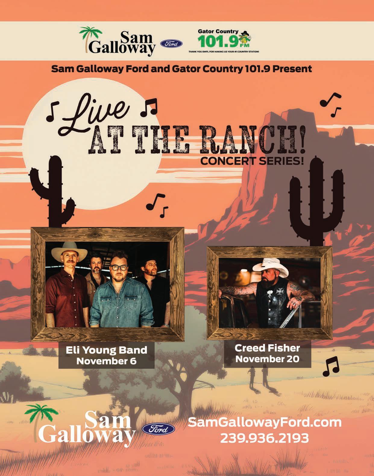 TheSamGallowayFord ConcertSeries presentsthe EliYoungBandonNov.6, CreedFisheronNov.20, HudsonWestbrookonNov.22 (soldout)andTracyByrdon March28,2026.