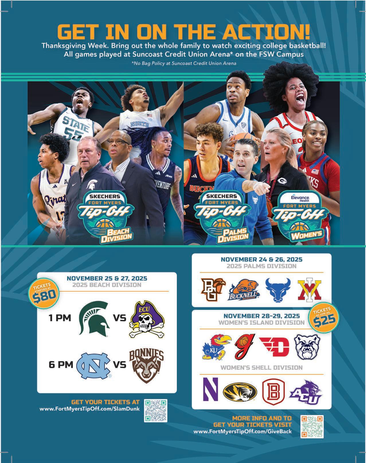 FestivalofTreesisareflectionof whatmakesSouthwestFloridastrong: generosity,creativity,andconnection. Theeventalsowelcomestoydonations throughtheFriendsofJanetFoundation, alocalnonprofitthathonorsthegiving spiritofJanetandAnnWilson.Guests whobringnew,unwrappedtoysreceive freeadmission,andallcollectedtoysare sharedwithlocalchildren’scharities.
