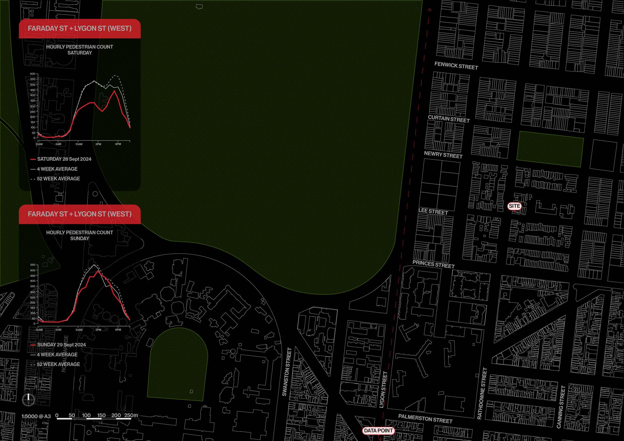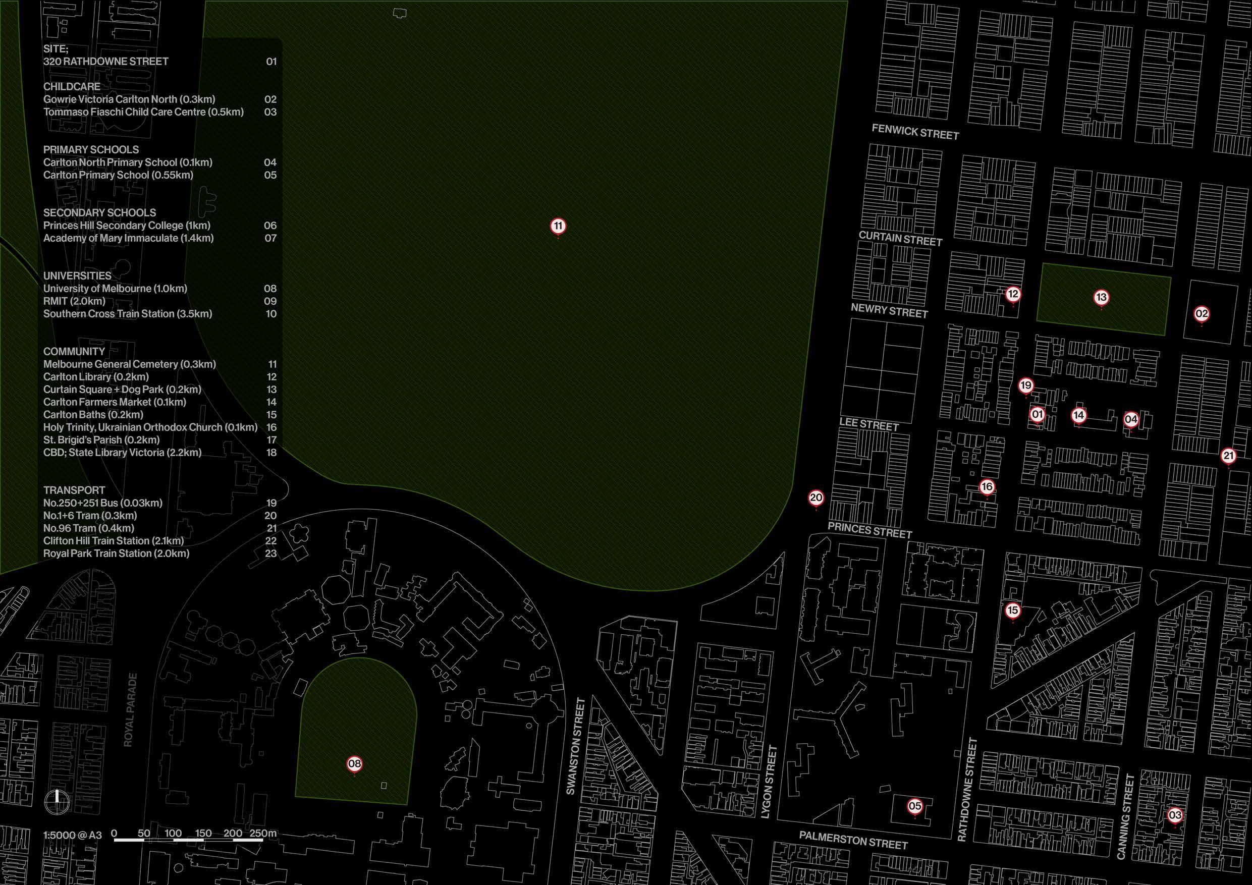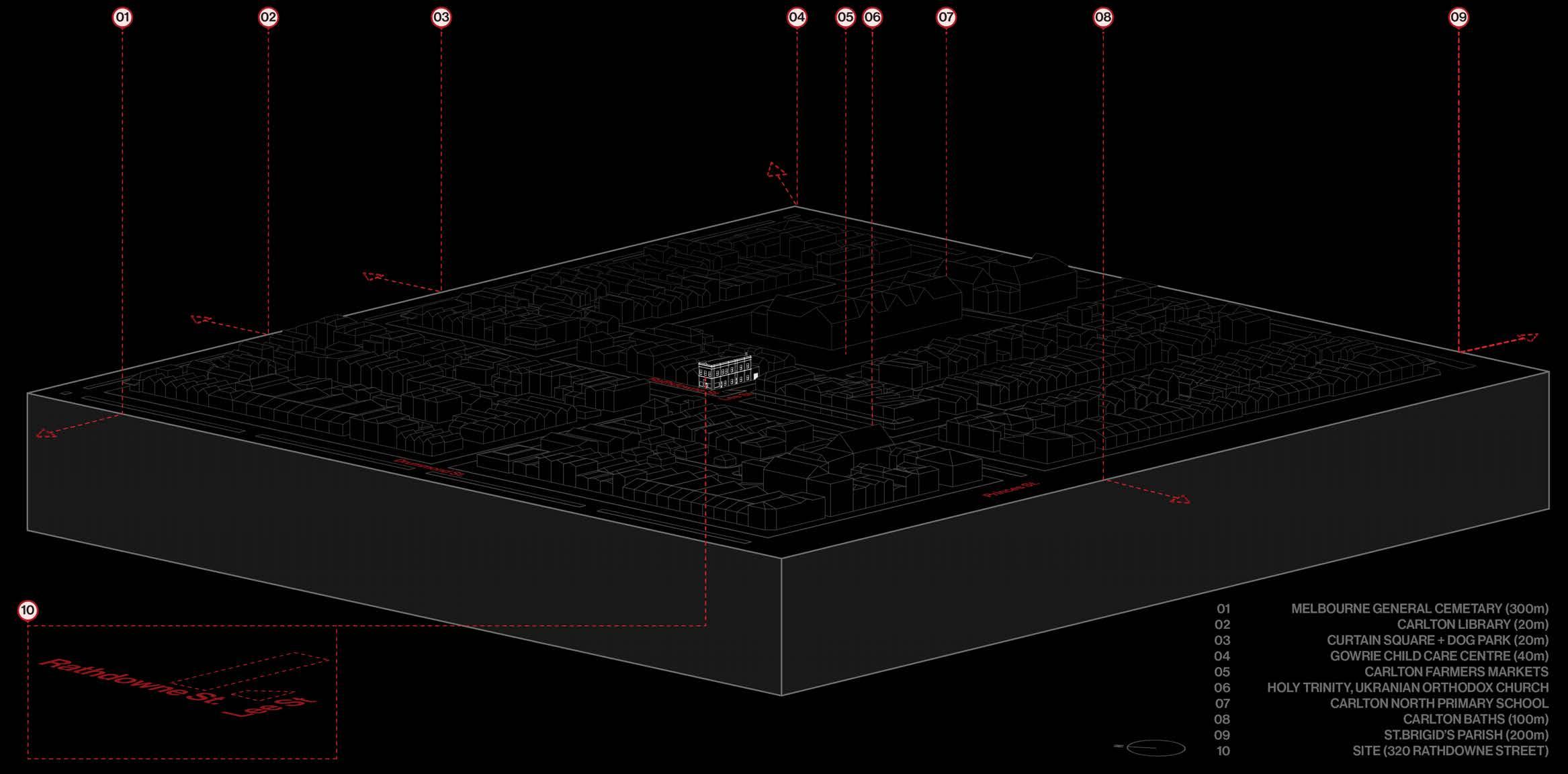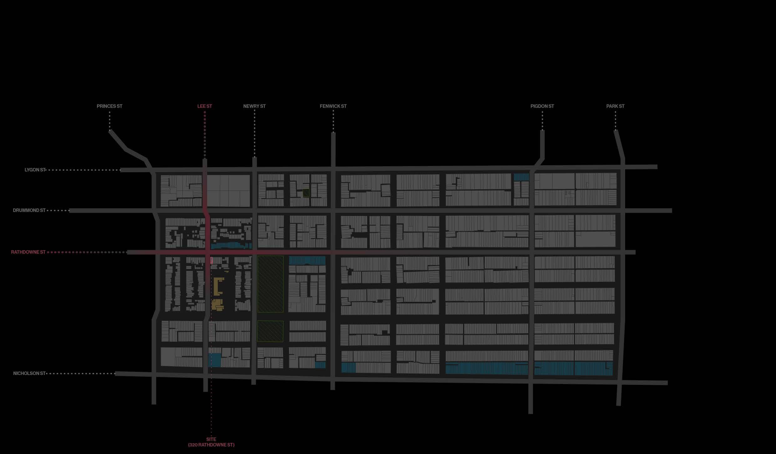 Definition of project foundations created the clear paramaters required for the project. In doing so, 320 Rathdowne Street was defined as the project site leading to direct ideation between precedents and concept development of long block sites.