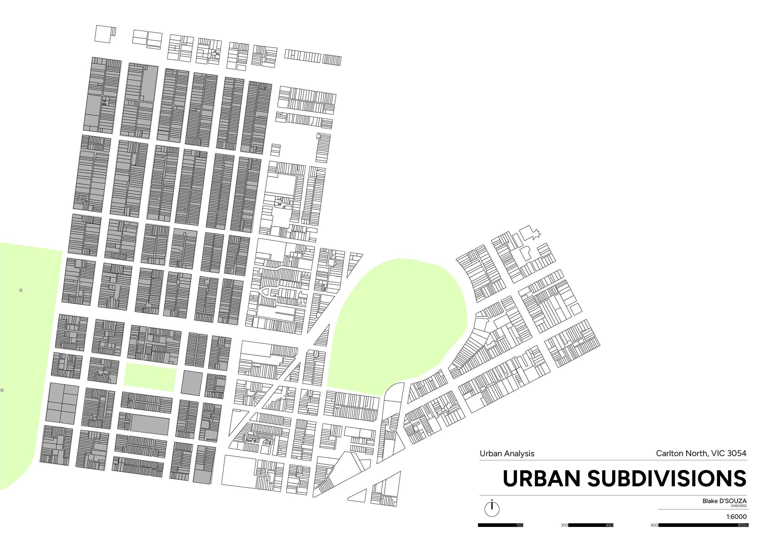The subdivisions of Carlton North create a clear and distinct linear pattern with blocks running vertically for 200-300 meters, covering the majority of the suburb. This grid-like street structure is quite characteristic, although there are amendments to portions of the layout to accommodate existing parklands, seamlessly integrating green spaces into the urban fabric.