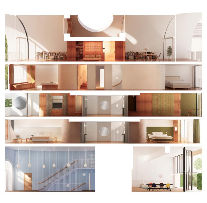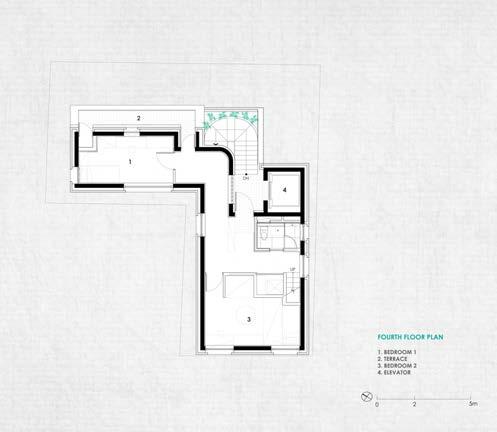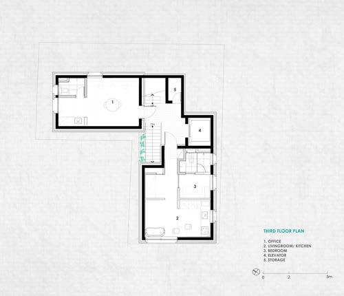On the ground floor, the townhouse features a multifunctional salon for cultural events. This space can be divided into two separate rooms using a movable partition, offering flexibility for various gatherings. The design emphasises creating adaptable spaces that serve the community’s cultural needs.