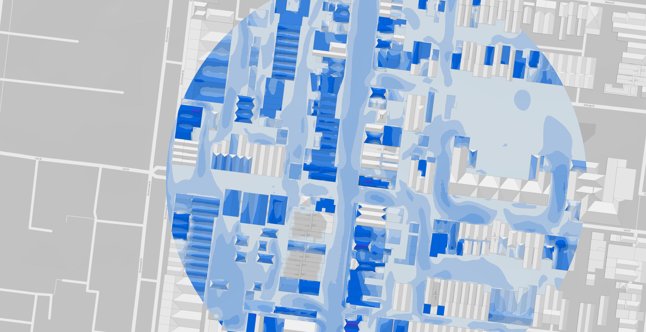 The utilisation of conditons analysis was conducted through AutoDesk’s Forma realtime environmental analysis tool.