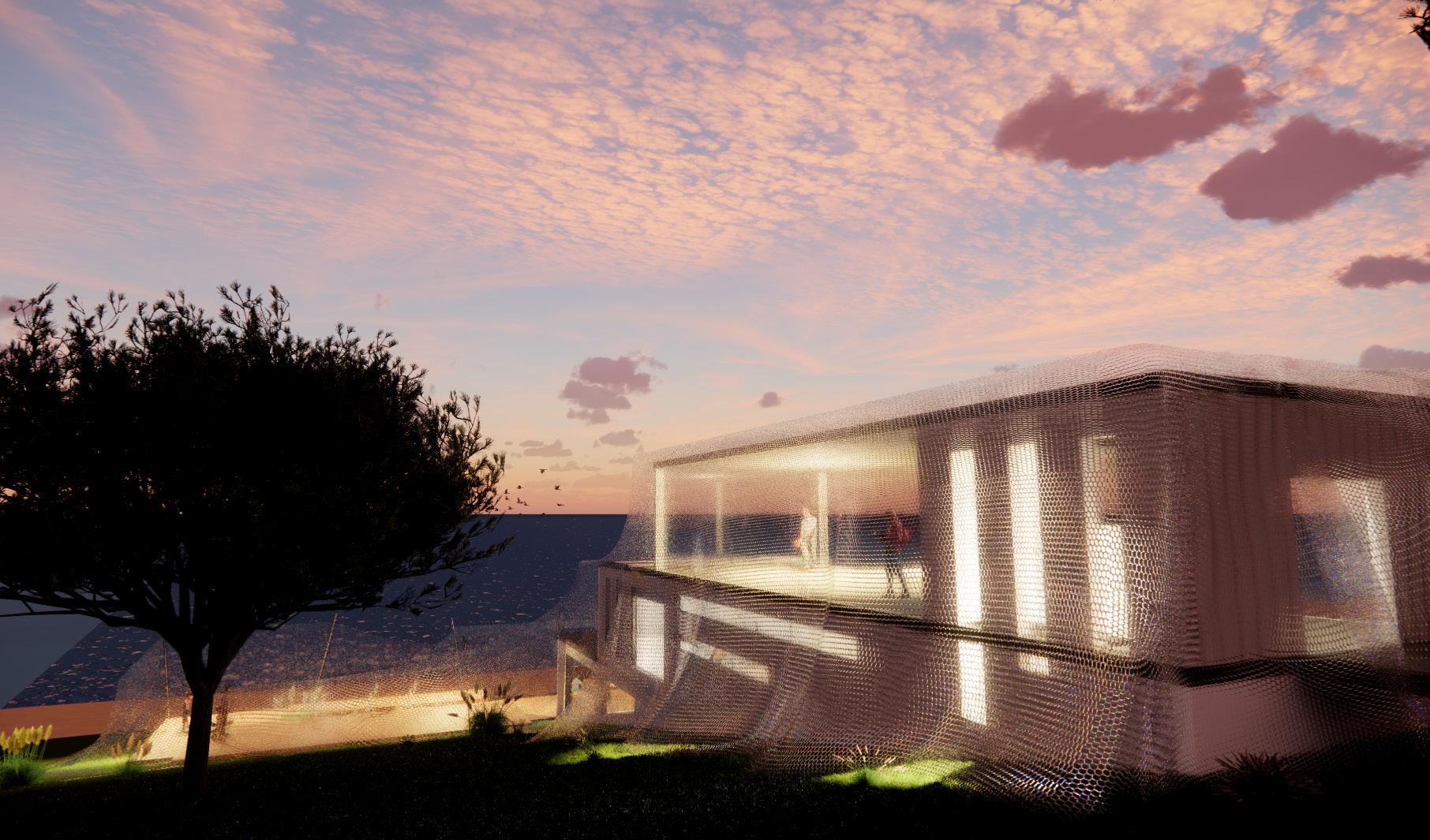 Figure 3 shows an upclose detail of the mesh exterior, and figure 4 focuses on the gallery.
