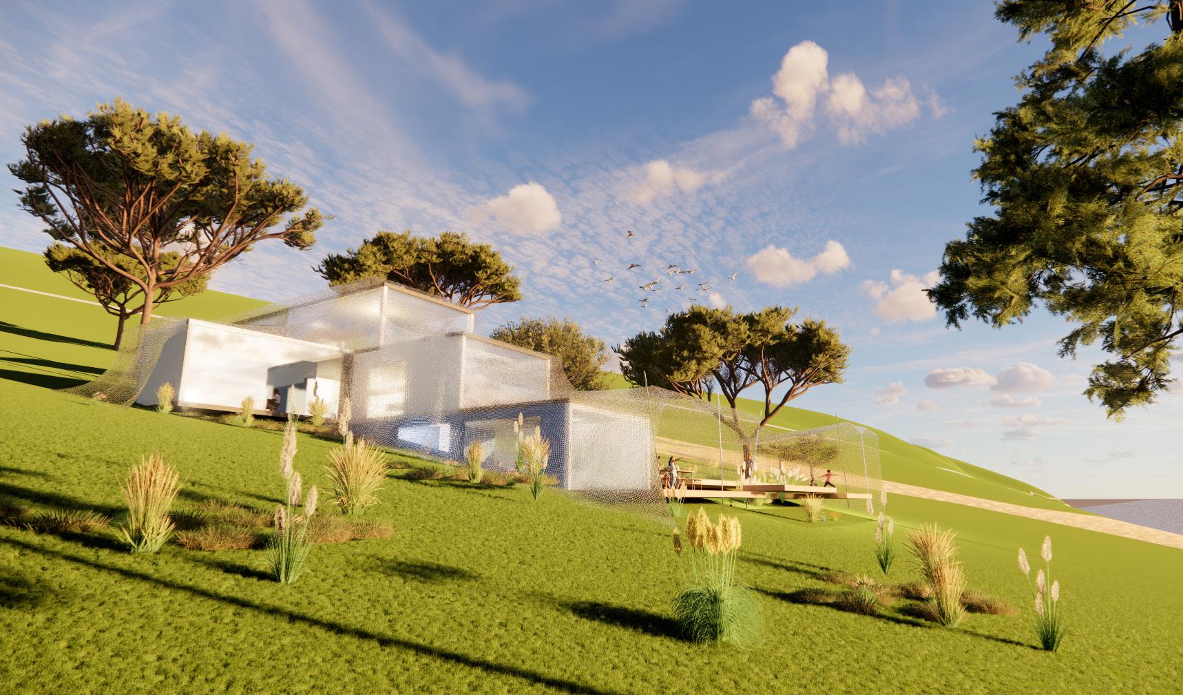 The top floor features wall-to-ceiling windows to maximise ocean views and to make occupants feel as though they are in the landscape.