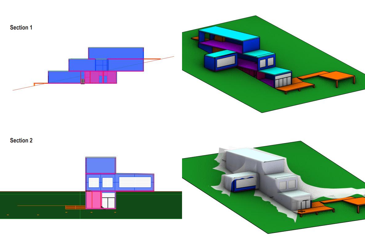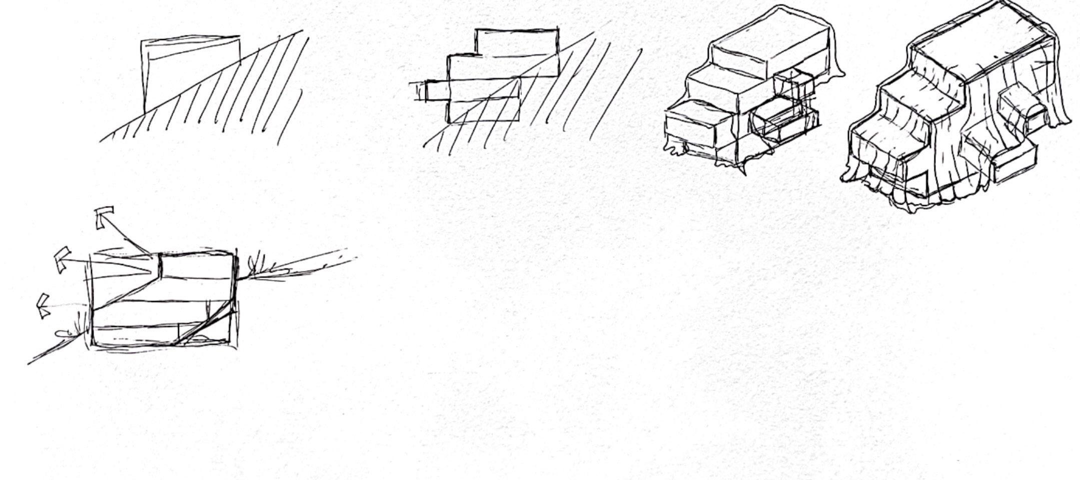 This design focuses on maximising the ocean views and mimicking the slope of the site with the staggered from.