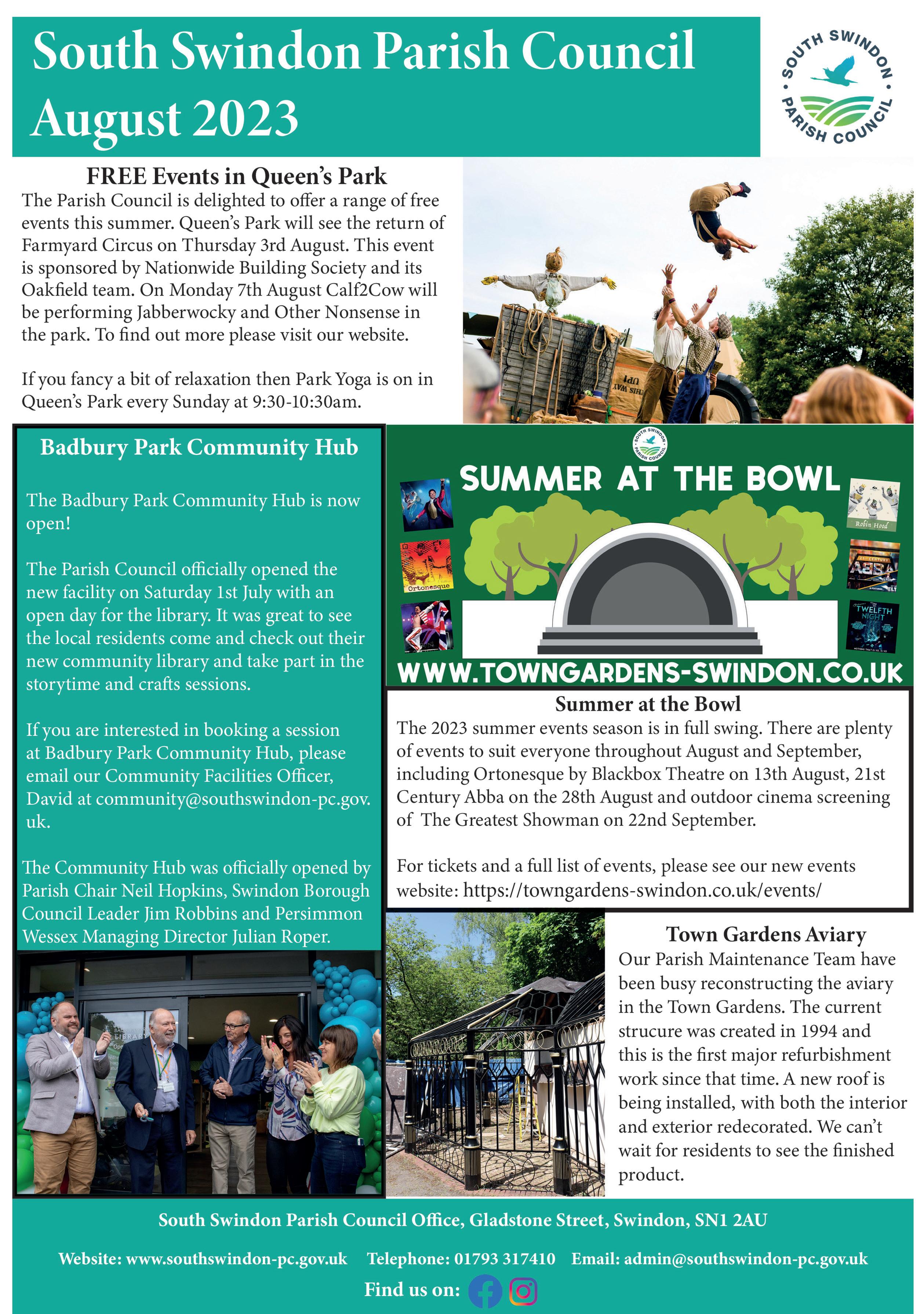 As I write this column, we have just wrapped up our first theatre event of the season, Shake It Up: The Improvised Shakespeare Show. To find out more information and to book tickets for events in the Bowl visit: www.towngardensswindon.co.uk