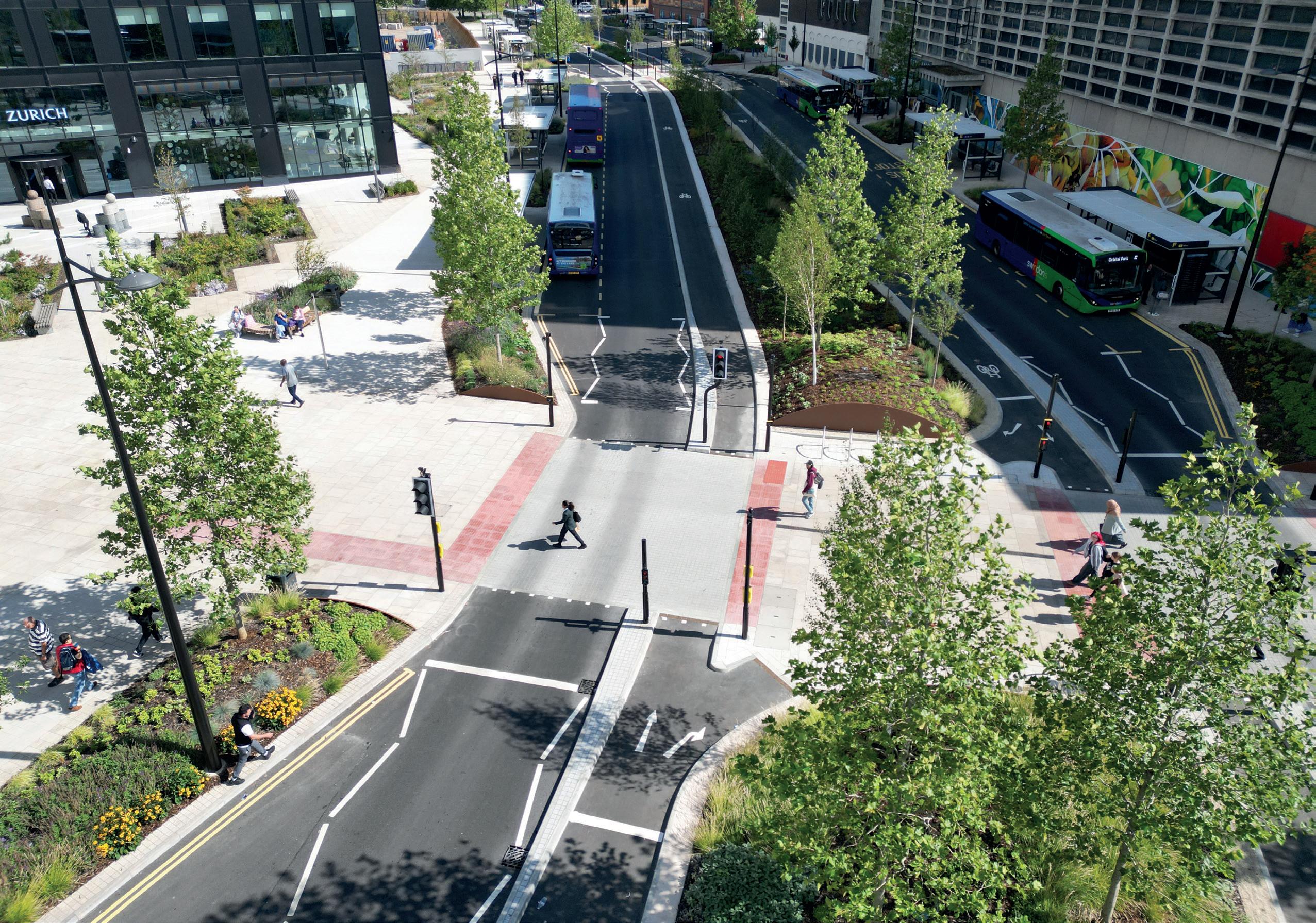 The new road features a vastly improved public realm with 186 trees and more than 23,000 plants, bulbs and shrubs, and dedicated stops for 30 local bus services as well as national services.