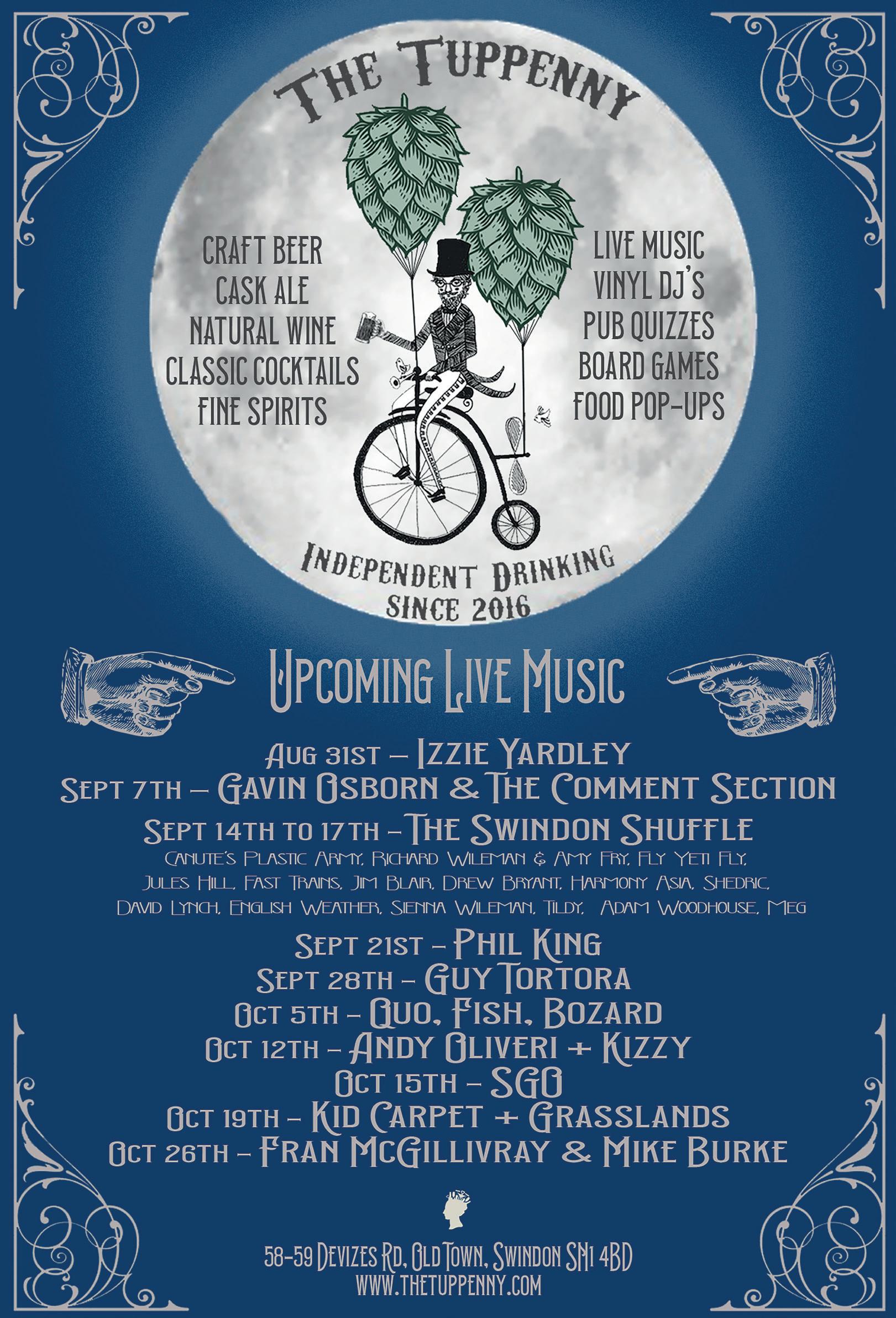 The Tuppenny opened in late 2016 on Devizes Road and very quickly became one of the best independent bars in Swindon, with a large range of craft beer, craft spirits, cocktails and wine. It has a unique and cosy feel with its own quirky decor, up-cycled furniture and even a bar top made from two pence coins! With brilliant momos provided by Yak The Himalayn Kitchen across the road. The Tuppenny is also a big supporter of original music in Swindon, putting on stripped back bands and singer-songwriters.