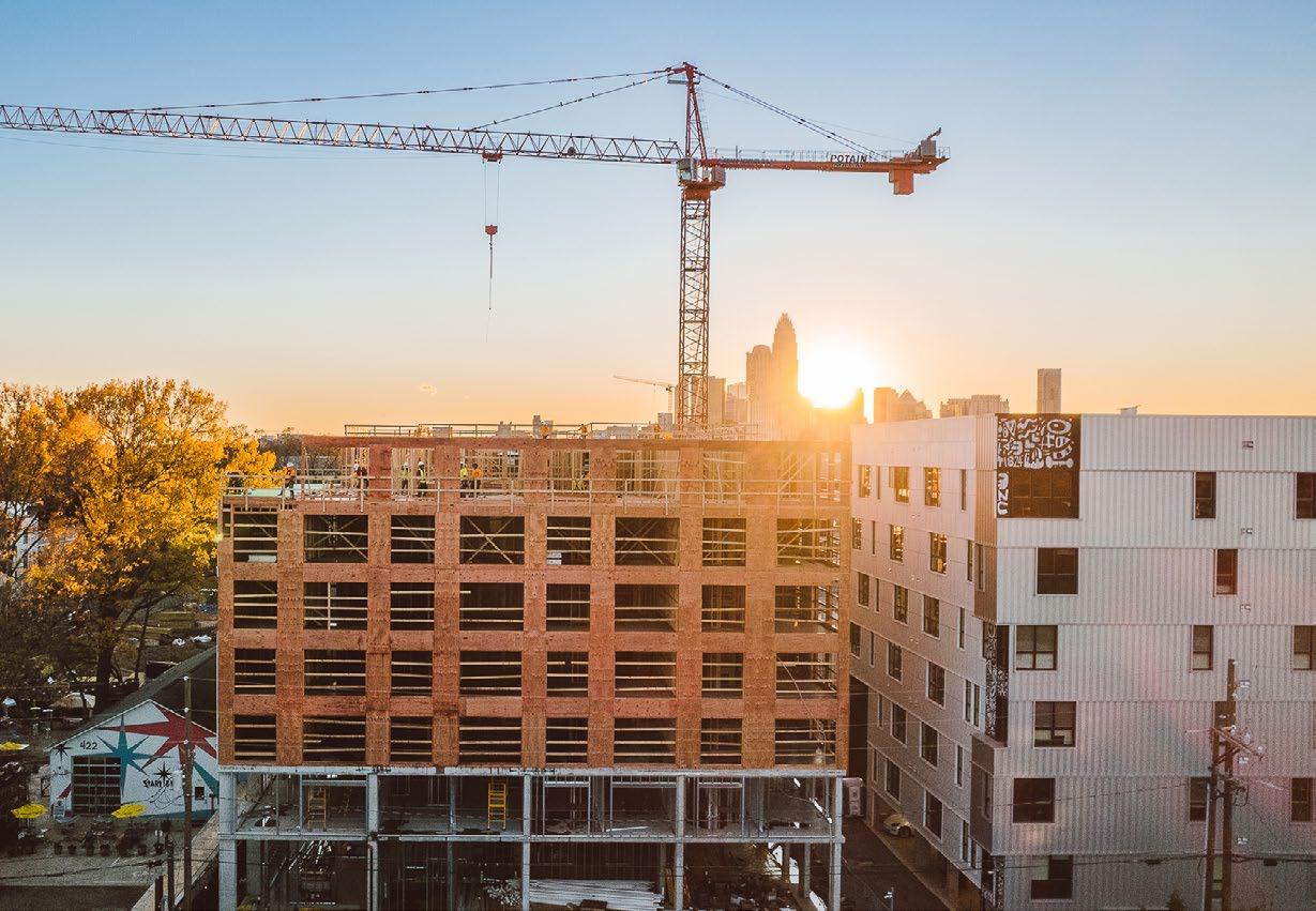 “Our partnership with Space Craft continues to deliver high-quality projects that are redefining urban living in one of Charlotte’s most popular neighborhoods,” says Smith. “Our goals closely align with Space Craft’s— namely, building sustainable and wellconstructed mixed-use communities that create pedestrian, non-motor dependent connectivity for residents and visitors alike. Add the integration of mass timber to the mix, and you have the ideal showcase for development that sustains the environment.”