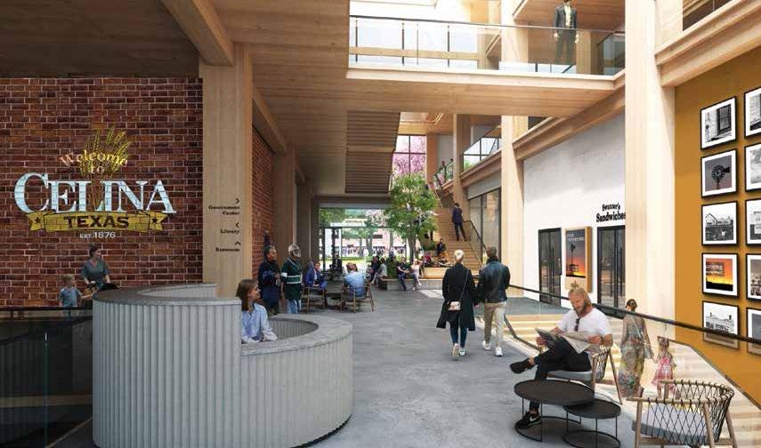 The City of Celina, TX, will soon feature a new centerpiece in its historic downtown: a four-story government center with an impressive mass timber atrium, accompanied by an adjacent three-story concrete parking structure. Swinerton Builders’ National Parking Structures team and mass timber affiliate Timberlab supported the project for over a year in preconstruction, tapping their collective experience from other public sector projects nationwide—including Griffin Swinerton’s public-private partnership in the neighboring City of McKinney. The new facility will double as both government hub and community venue, housing the city’s essential administrative services, a library, and office spaces along with a rooftop garden and gathering space.