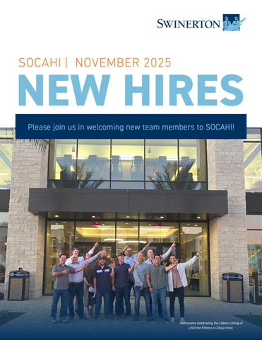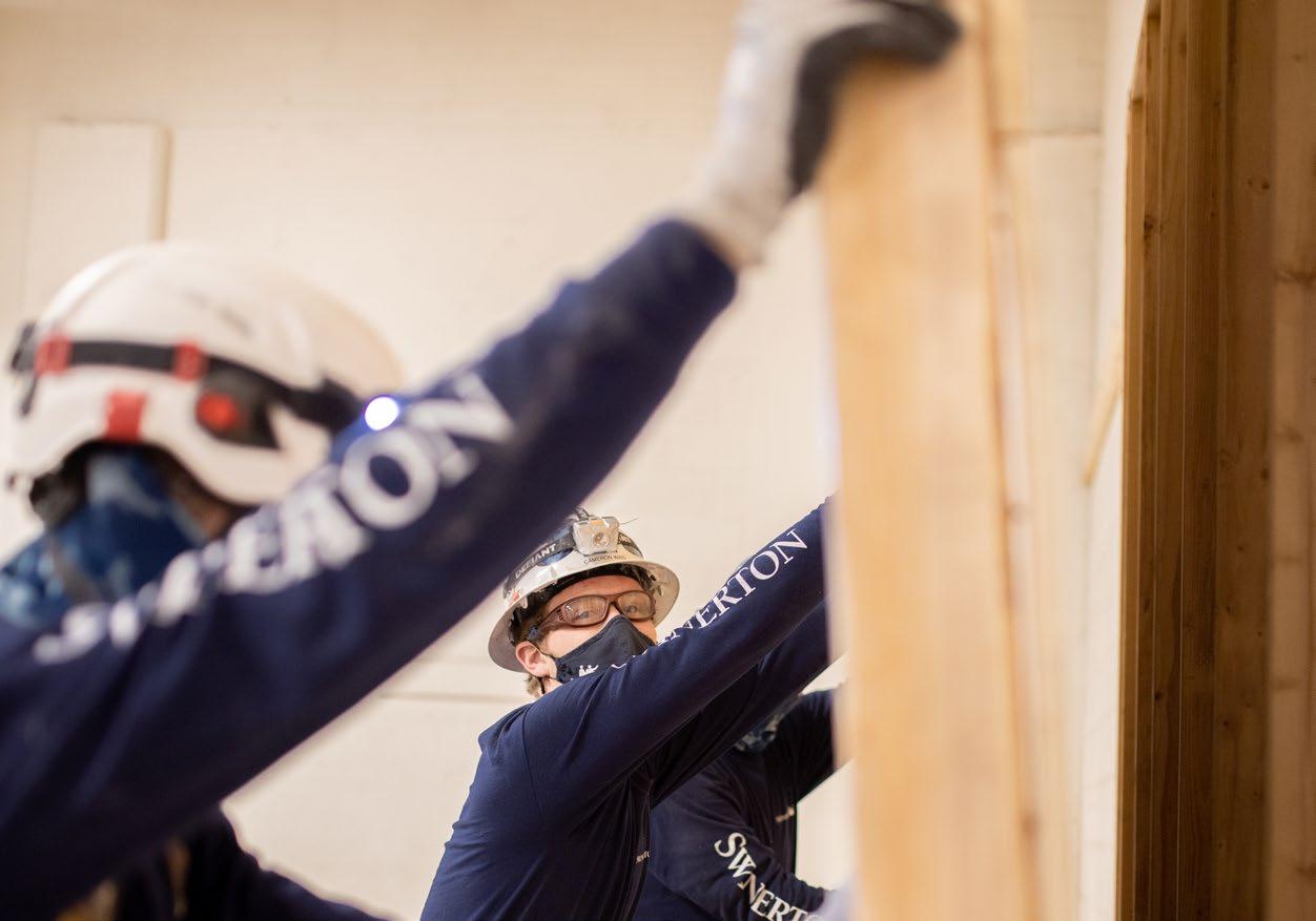 In this publication, "Swinerton" may refer to Swinerton Incorporated or Swinerton Builders, depending on context. The "Swinerton Family of Companies" refers to parent company Swinerton Incorporated and its subsidiaries, including Griffin Swinerton, Lindgren Development, MDBuilders, SAK Builders, Swinerton Builders, Swinerton Energy, and Timberlab.