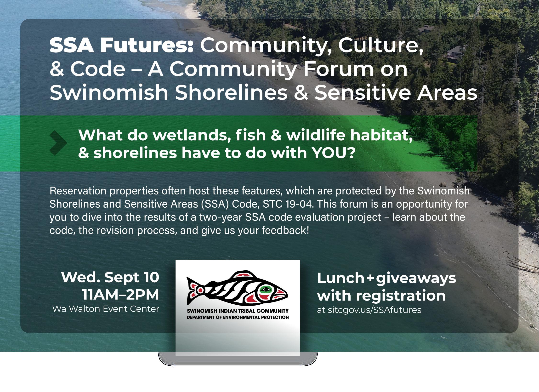 The Tribe recently received grant funding to implement updates to the Swinomish Shorelines and Sensitive Areas (SSA) Code, STC 19-04, which regulates what