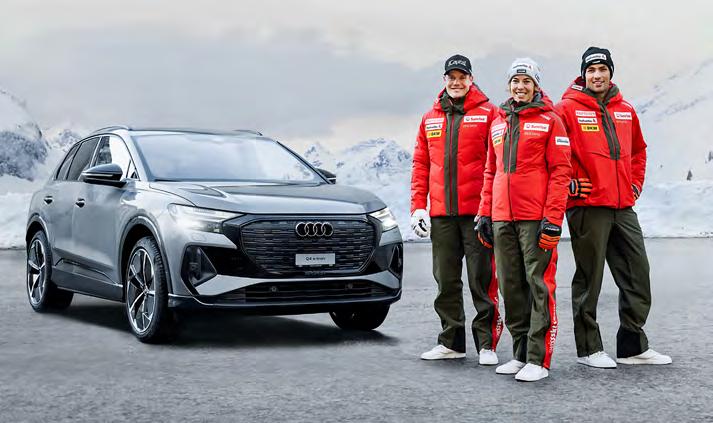 Audi Q4 e-tron Edition Swiss-Ski 45 quattro, 285 ch, 17,2 kWh/100 km, 0 g CO₂/km, cat. B. Prix catalogue CHF 65 200.–, moins avantage prix Swiss-Ski CHF 11 210.– (composé du bonus Premium de CHF 2150.–, de la remise MemberPlus de CHF 7170.– et du bonus de 3% de la fédération Swiss-Ski soit CHF 1890.–), remise totale de 17,3%, prix d’achat au comptant CHF 53 990.–. Taux d’intérêt annuel effectif du leasing: 0,99%, durée: 48 mois (10 000 km/an), premier versement: CHF 13 500.–. Mensualité de leasing: CHF 399.–/mois, hors assurance casco complète obligatoire. Modèle présenté: Audi Q4 e-tron Edition Swiss-Ski 45 quattro, 285 ch, 17,7 kWh/100 km, 0 g CO₂/km, cat. B. Gris Typhon métallisé, extérieur S line, jantes Audi Sport au design Aero rotor à 5 bras, en noir, finition brillante, 8,5 J | 9,0 J × 21, pneus 235/45 | 255/40 R21, châssis sport, vitrage pare-soleil surteinté, boîtiers de rétroviseurs extérieurs en noir, toit en verre panoramique, suppression du monogramme de puissance et technologie, prix catalogue CHF 72 540.–, moins avantage prix Swiss-Ski CHF 12 460.–(composé du bonus Premium de 2390.–, de la remise MemberPlus de CHF 7970.– et du bonus de 3% de la fédération Swiss-Ski soit CHF 2100.–), remise totale de 17,3%, prix d’achat au comptant CHF 60 080.–, premier versement: CHF 15 020.–, mensualité de leasing: CHF 439.–/mois. L’octroi d’un crédit est interdit s’il entraîne le surendettement de la consommatrice ou du consommateur. Financement par AMAG Leasing SA. Promotion valable pour les contrats conclus jusqu’au 27.12.2025 ou jusqu’à révocation. Sous réserve de modifications. Valable pour tous les véhicules importés par AMAG Import SA. Recommandations de prix sans engagement de l’importateur AMAG Import SA. MemberPlus: offre valable uniquement pour les membres de la fédération Swiss-Ski.