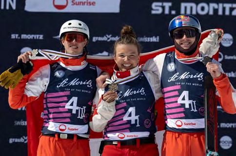 Fin mars, Lina Kozomara a décroché le bronze par équipe aux Mondiaux en Engadine aux côtés de Pirmin Werner (à gauche) et Noé Roth (à droite).