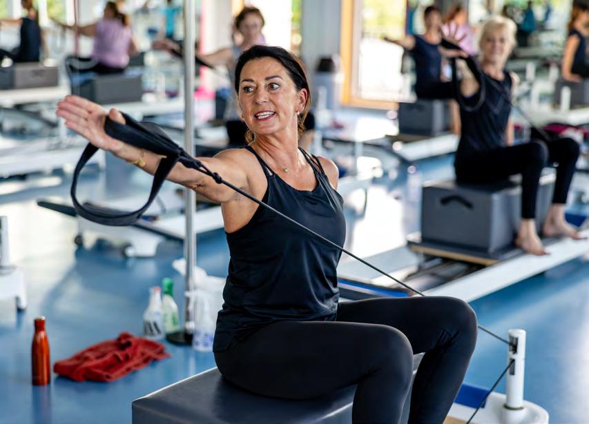 Zur Mittagsstunde läuft Conny Lehmann-Kissling zur Bestform auf. Sie postiert sich im Fitness-Center vor einer Gruppe, die sich jeden Mittwoch im GymFit von Affoltern am Albis ZH zum Reformer Pilates trifft. «Wir lösen den Rücken und mobilisieren die Wirbelsäule!», ruft die 63-Jährige. Die Übung zeigt sie stilistisch einwandfrei und mit Leichtigkeit vor. «Denkt an eure Haltung!»