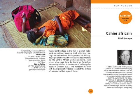 Switzerland / Germany, 117 min. Original languages: German / French Production: PS Film GmbH, Zurich Filmpunkt GmbH, Cologne Specogna Film, Berlin ZDF / 3sat World Rights: PS Film GmbH, Zurich T +41 44 481 31 70 psfilm@hotmail.com