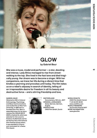 WORLD RIGHTS: ONIX Film GmbH, Zurich T +41 44 272 38 00 www.onixfilms.com WORLD PREMIERE: Zurich Film Festival 2017 MORE INFORMATION: www.glow.film