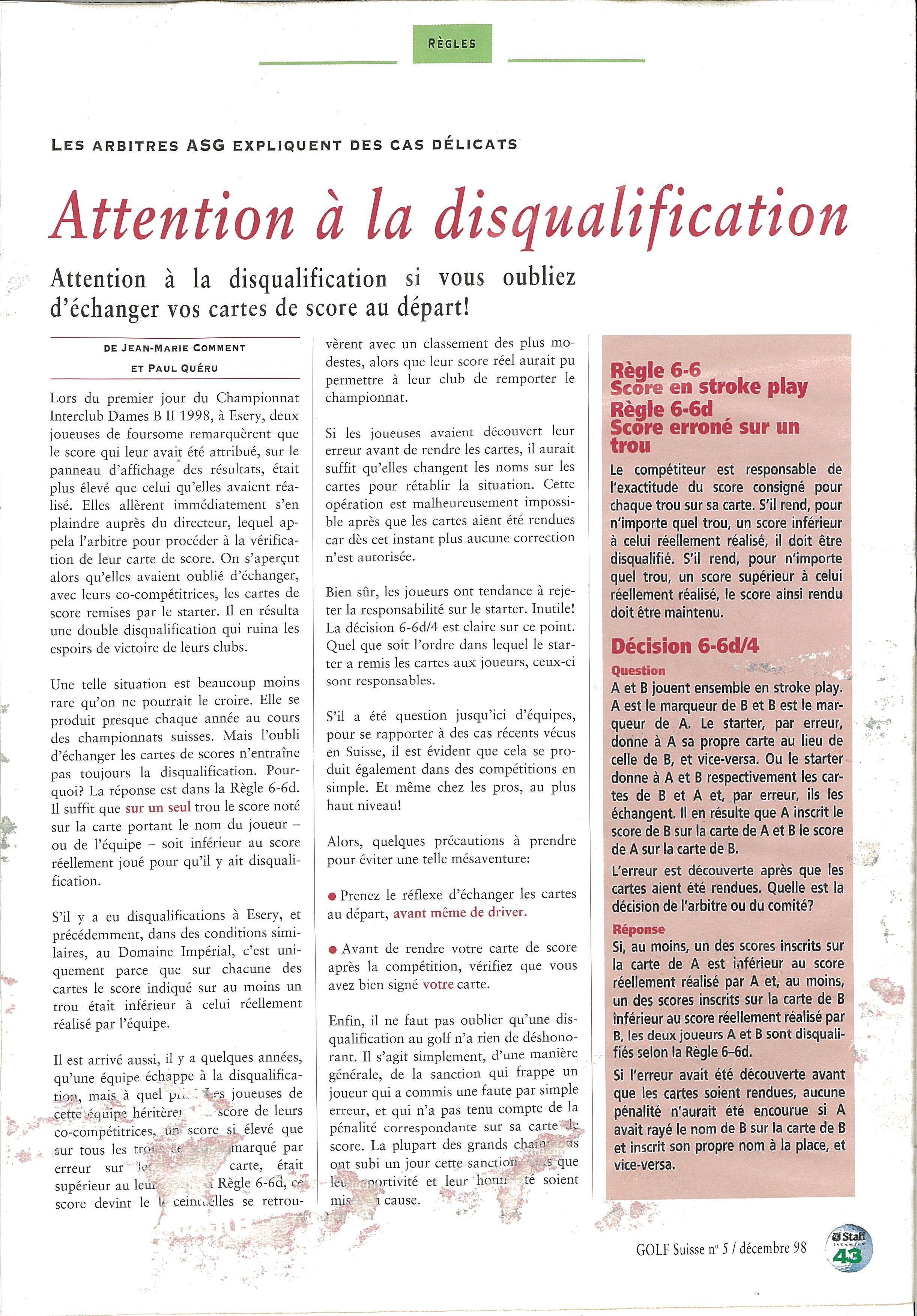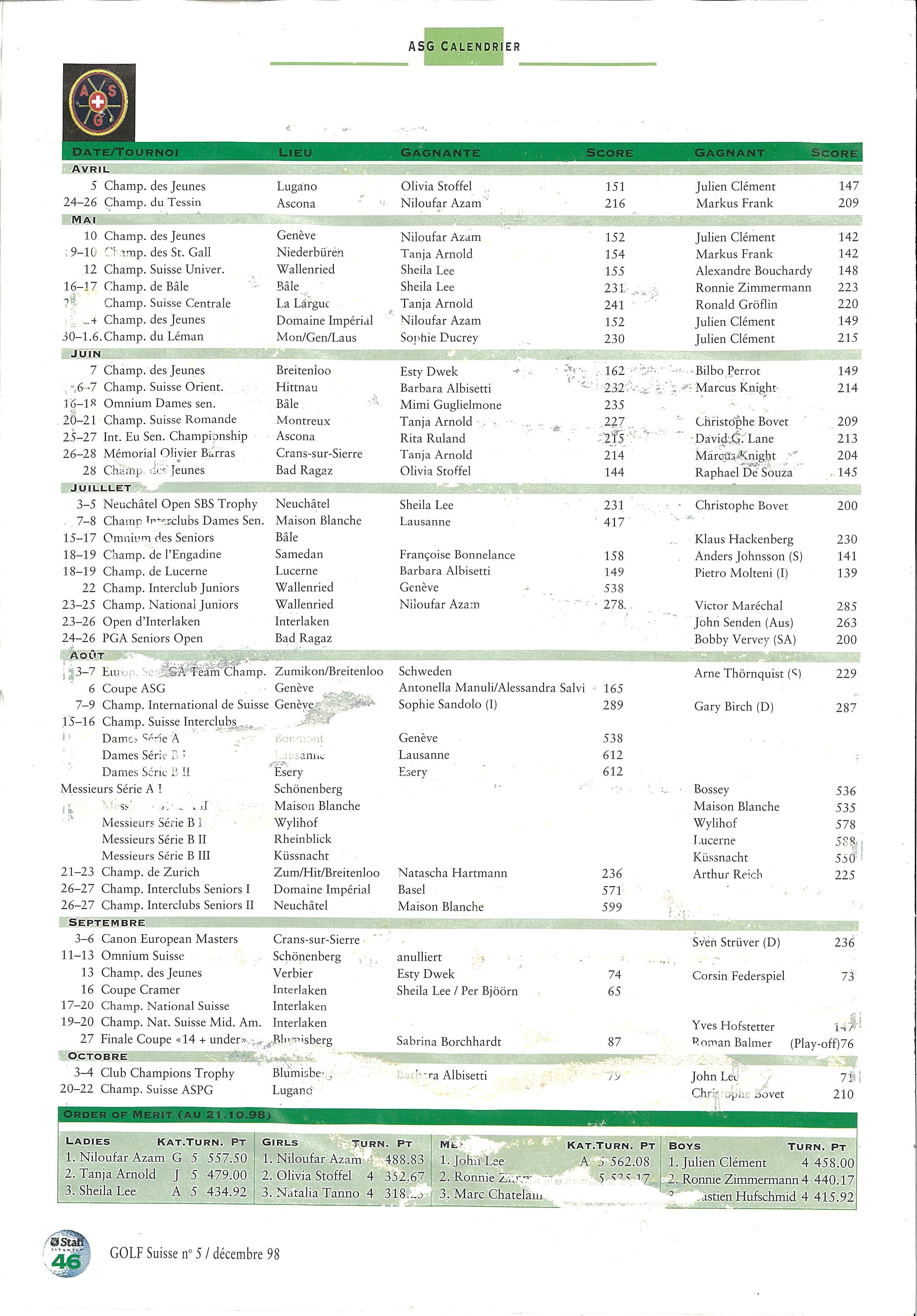 GOLFSUISSE 1998-5 FR