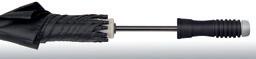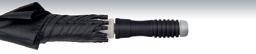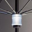 Armature en fibres de verre aux qualités de légèreté, de robustesse et de grande solidité. Système de fermeture sans bouton pour une ouverture et une fermeture confortables du parapluie.