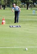 la Bavaroise habitante de Dubaï, s’est languie pendant de longs moments dans la cage de départ pour se mesurer l’un après l’autre aux 28 participants à l’occasion du concours «Beat the Pro». Les golfeurs qui réussissaient à placer leur balle plus près du drapeau qu’elle, gagnaient une bouteille de champagne. Ce ne fut pas facile car, pour des concurrents revêtus de vêtements chauds et épais, il était compliqué d’effectuer un mouvement décontracté et en souplesse.
