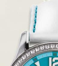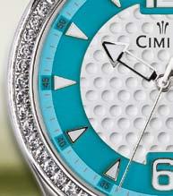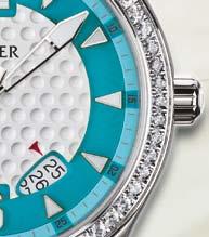 Développée pour le golf, portée par des professionnels et licenciée par St Andrews Links. Modèle Queen of Golf spécialement conçu pour les femmes, plus petite et délicate, avec lunette sertie 80 diamants et une trame art-déco - avec mécanisme de comp-tage mécanique breveté pour le golf, mouvement automatique, amortisseur de choc. Disponible auprès de reven-deurs spécialisés.