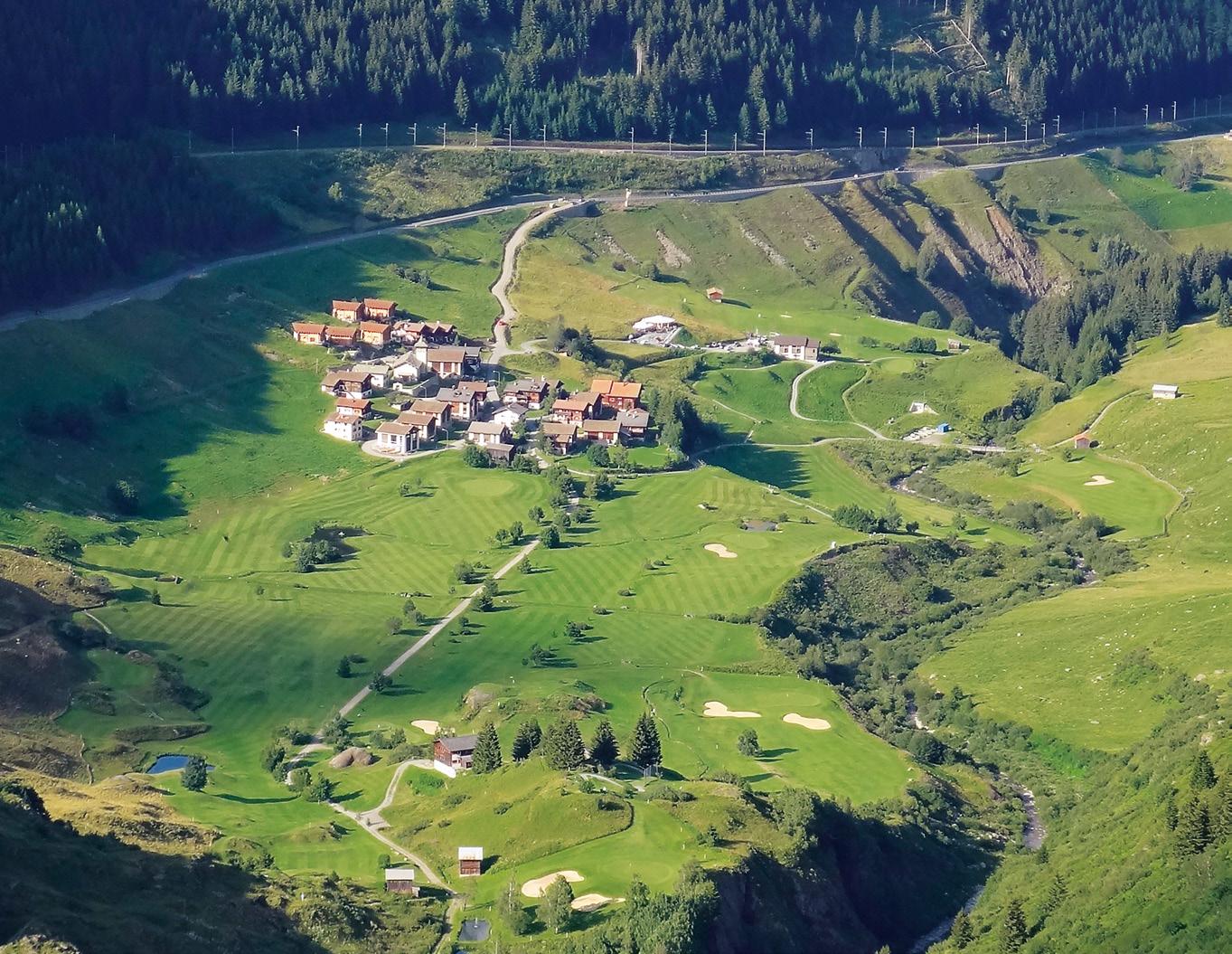 Vous verrez très rarement les parcours de golf depuis cette perspective. Nous vous montrons les sites de golf suisses vus du ciel et espérons que ce «vol d’oiseau» éveille en vous l’envie de découvrir de nouveaux parcours et leurs charmes particuliers. La photo montre le domaine du Golf Club Sedrun.