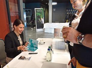 C’est toujours par le garage souterrain qu’on accède aux vestiaires et au local des chariots, mais sinon tout a changé. Tout est beaucoup plus grand dans le nouveau clubhouse, un bâtiment en bois qui, terrasse incluse, fait 70 mètres de long et dispose de 4000 m 2 de surface utile sur deux niveaux. La capacité pour des manifestations passe de 160 à 270 personnes. Les salles sont modulables et un nouveau «smokers lounge», avec vue sur le driving range, complète l’offre. Grâce à des fenêtres allant du plafond au sol, d’une hauteur de 5,40 mètres, le bâtiment donne une impression moderne, avec beaucoup de lumière. L’utilisation de la pierre et du bois indigènes