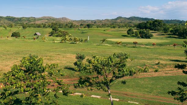 réservé. J’apprends que dix-huit caddies ayant reçu une «formation» travaillent dans ce club. Landry joue lui aussi au golf, avec un handicap de 36. Sur les larges trous du Pearls, je profite des belles vues sur le canal de Mozambique, la grande île de Madagascar et les petites îles alentour, Nosy Sakatia et Nosy Tanga. Des animaux nous tiennent compagnie lors de notre partie de golf, par exemple des caméléons ou des zébus paissant tranquillement.