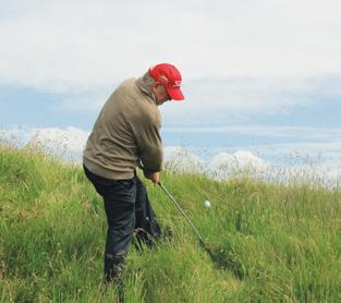 avec mon swing. Je pense que j’ai le feeling avec la balle, mais je ne peux pas m’empêcher d’utiliser ma force. Je peux vivre avec mon handicap de 36. Je dirais que sur un parcours je me comporte toute à fait correctement, je ne jure pas et je suis content de mes bons coups.