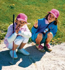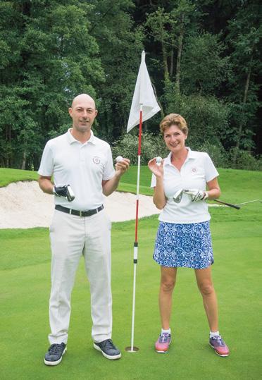 néophytes avant que ceux-ci tentent de toucher tout simplement la balle. La première cible n’était qu’à trente mètres, en frappant trop à droite, on finissait au bunker. Une jeune assistante avait expliqué la règle du jeu auparavant: «Dès que vous avez joué six coups sur un trou, vous notez un 7 et vous passez au trou suivant.» Au deuxième trou déjà, un jeune garçon a suspendu cette règle en disant, rayonnant: «J’ai déjà fait six coups, mais je veux continuer à jouer.» Même pour les bons golfeurs d’ailleurs, ce Pitch & Putt représente un excellent moyen d’entraînement. Sur chaque trou, il y a deux départs sur tapis. Le trou le plus long mesure …67 mètres.