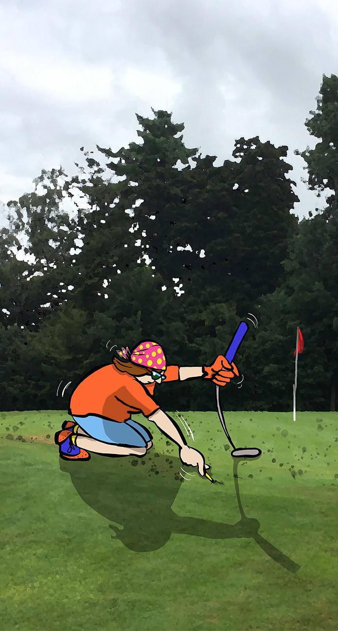 Car même si ça n’a pas l’air évident au premier abord, l’insolente ménagère à la robe à pois joue volontiers au golf.