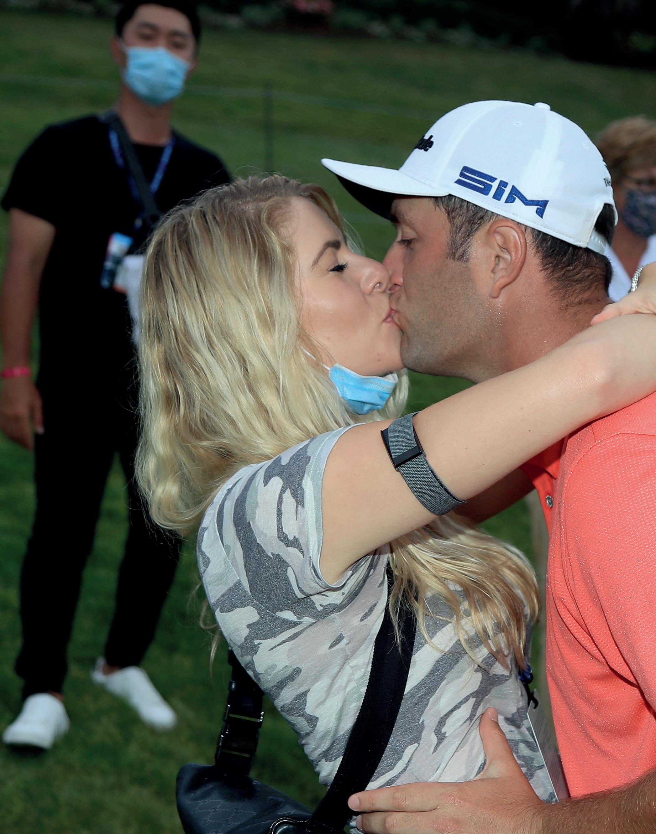 Da stört die Maske nur: Kelley Cahill küsst ihren Mann Jon Rahm nach dem Sieg beim Memorial Tournament. Mit dem Triumph überholte der 25-jährigen Spanier die bisherige Weltnummer 1, Rory McIlroy. Rahm ist nach Severiano Ballesteros erst der zweite Spanier, der es ganz an die Spitze der Weltrangliste geschafft hat. «Mit 13 oder 14 Jahren habe ich mir vorgenommen, einmal der beste Golfer der Welt zu sein. Es ist einfach surreal, dass es so schnell passiert ist. Wie viele Leute schaffen es, sich als Mittzwanziger einen Lebenstraum zu erfüllen?», fragte Rahm an der Pressekonferenz.