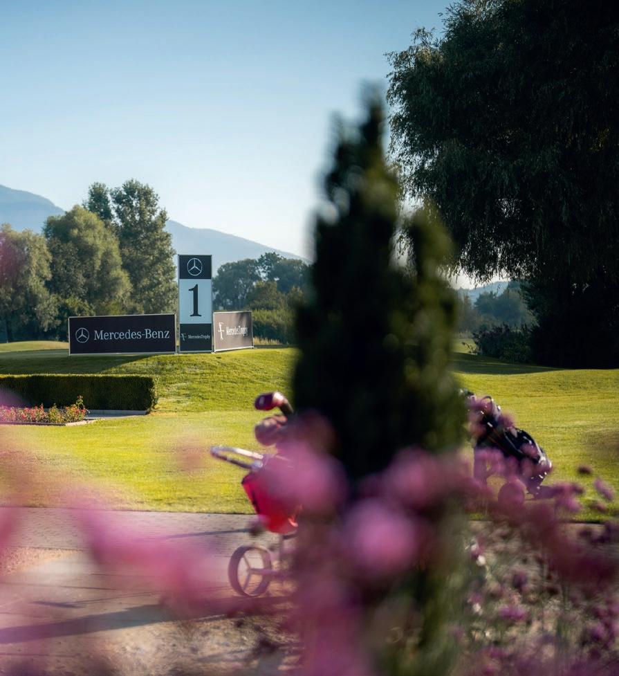 Vor dem hochmodernen Clubhaus warten eine Flotte brandneuer Golfcarts und eine grosse Auswahl an ebenso neuen TaylorMade-Schlägern auf die Golferinnen und Golfer, die es vorziehen, Schläger zu mieten. Am ersten Abschlag weist der Starter darauf hin, dass Loch 8, ein