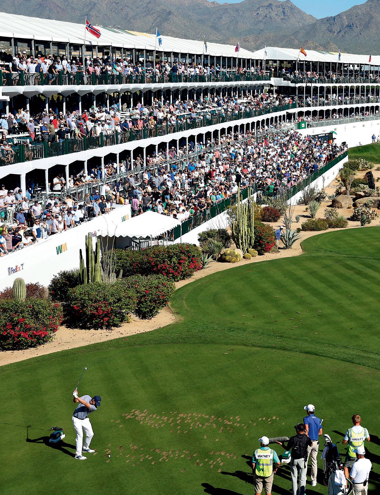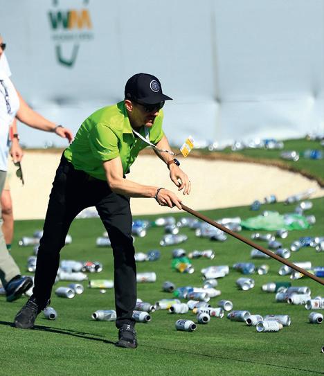 Deux trous-en-un sur le célèbre trou no 16, un par 3 dans la fournaise de l’arène du TPC Scottsdale en Arizona. La dernière fois que cela est arrivé, c’était il y a exactement 25 ans. Lors du Waste Management Phoenix Open, les fans se sont donc déchaînés et ont fêté le hole-in-one de Sam Ryder au troisième tour et celui de Carlos Ortiz en finale de manière plutôt «humide». La bière a volé dans les airs, les gobelets et canettes en PET ont atterri par centaines sur le gazon. La gestion des déchets est – heureusement – l’activité principale du sponsor en titre: après un bon quart d’heure, le green était de nouveau parfaitement propre. Le tournoi se nomme «the greenest show in the world». Depuis huit ans, il est considéré comme le plus grand évènement sportif autour du globe, qui se déroule «sans déchets non recyclés». En 2017 déjà, le Waste Management Phoenix Open, en plein désert de l’Arizona, était le premier tournoi au monde à obtenir un certificat GEO.